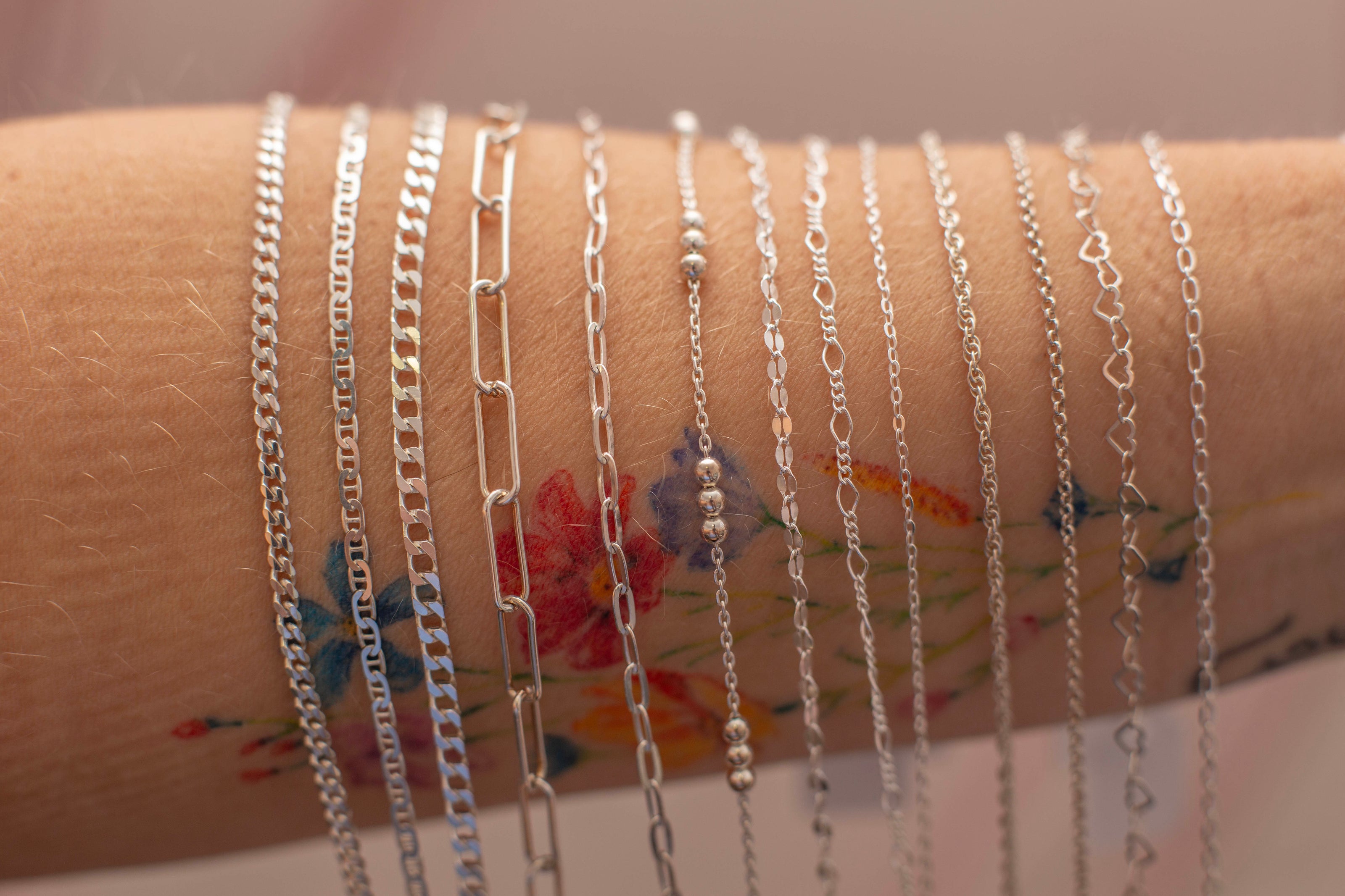 Chain MenuChoose from our collection of sterling silver and gold-filled chains, available in a variety of beautiful styles — then decide whether you’d like a bracelet, necklace, or anklet.